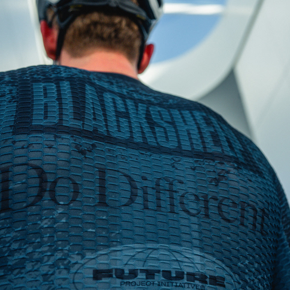 The Men's Aero SS Jersey is to go fast, or faster. Crafted from Air Waffle Mesh, this 150g fabric is a blend of Spandex and Polyester, offering awesome fit. AirWaffle is designed to cut through the wind using golf ball technology. And SweatMesh has your back, literally. This jersey is ready to Race.
